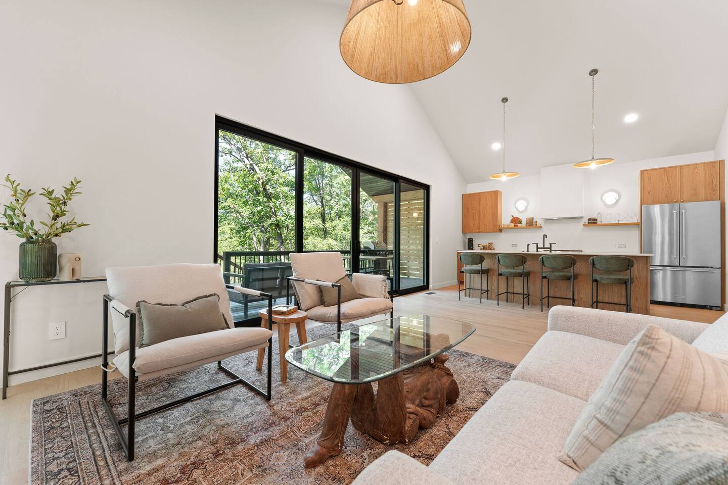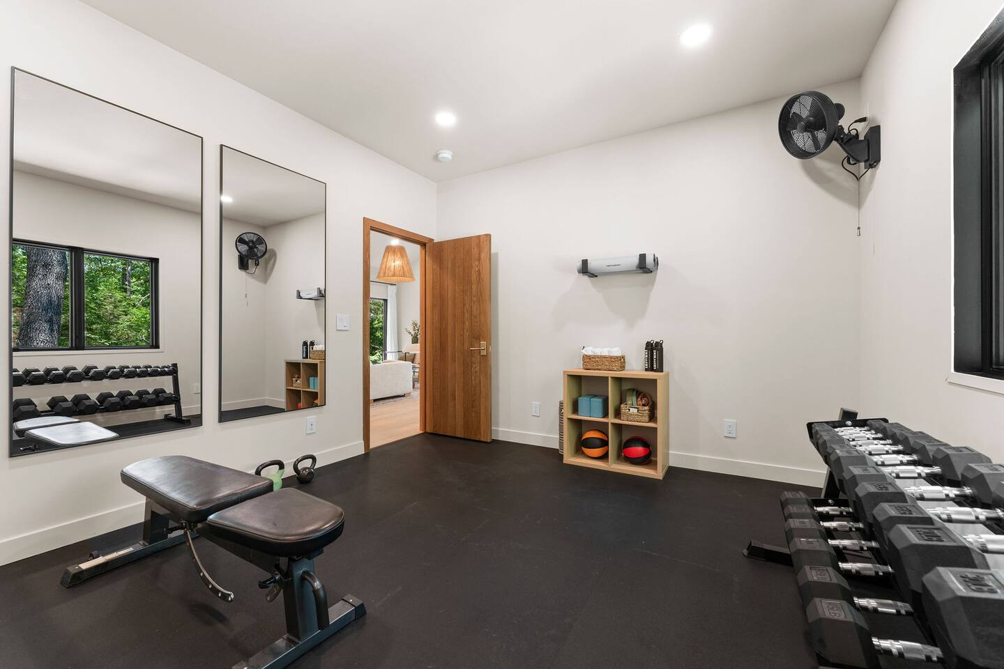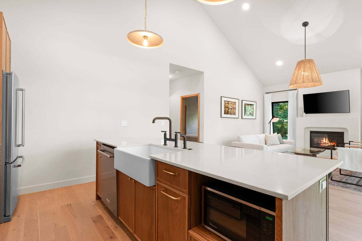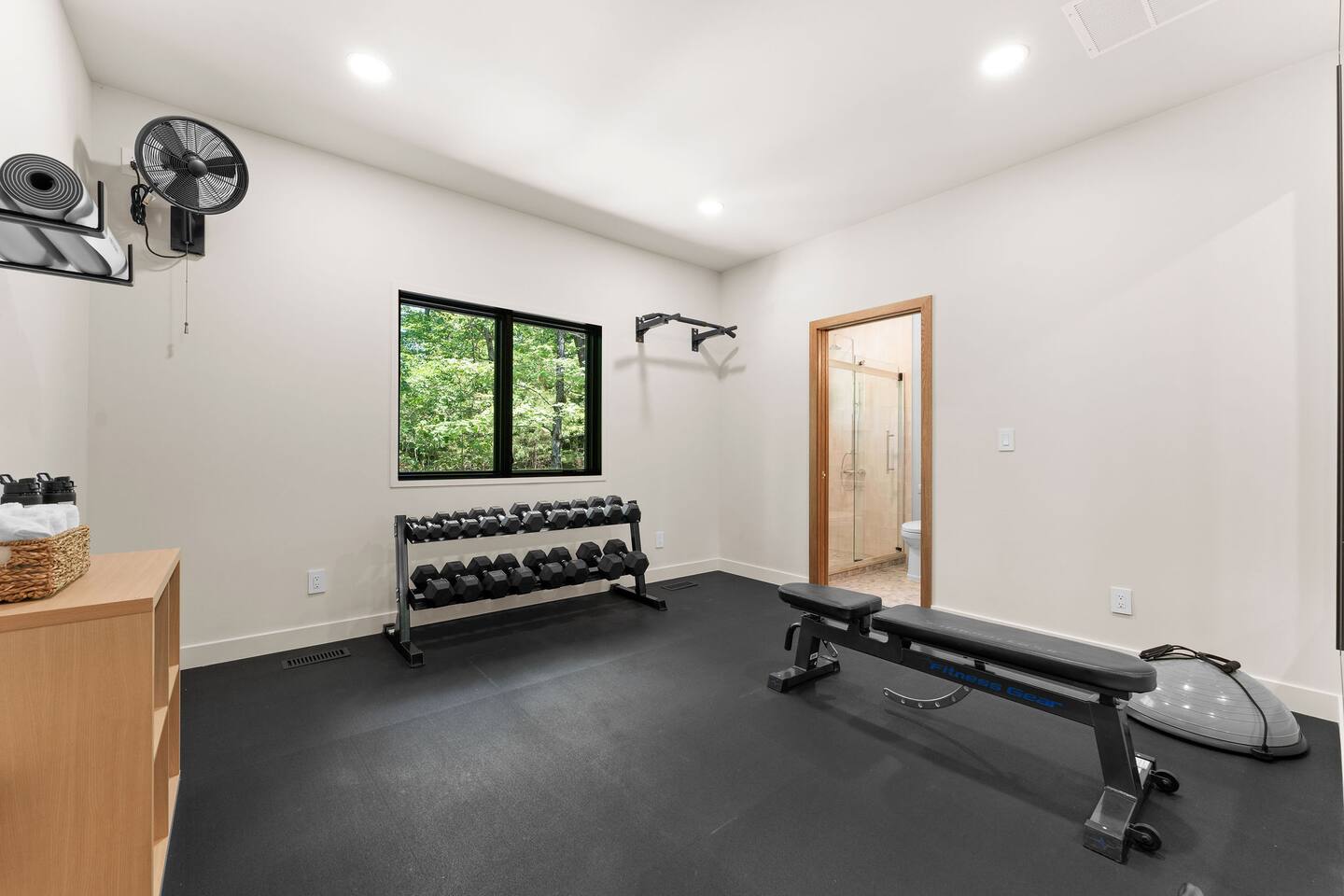 Get ready to unwind at our lakefront wellness retreat featuring a private onsite gym with en suite bathroom and hot cold therapy with a PLUNGE cold plunge and custom-built Scandinavian-style sauna. Wellness doesn't stop there — guests can relax in the private hot tub and enjoy the calming nature of our surrounding lake area. The primary bedroom is a sleep sanctuary with Cozy Earth sheets and spa-inspired en suite with double shower heads and lux amenities. The fully-stocked chef's kitchen features Kitchen Aid appliances and a Nespresso Vertuo coffee maker. We supply coffee and espresso, half & half, sugar and stevia for your stay.