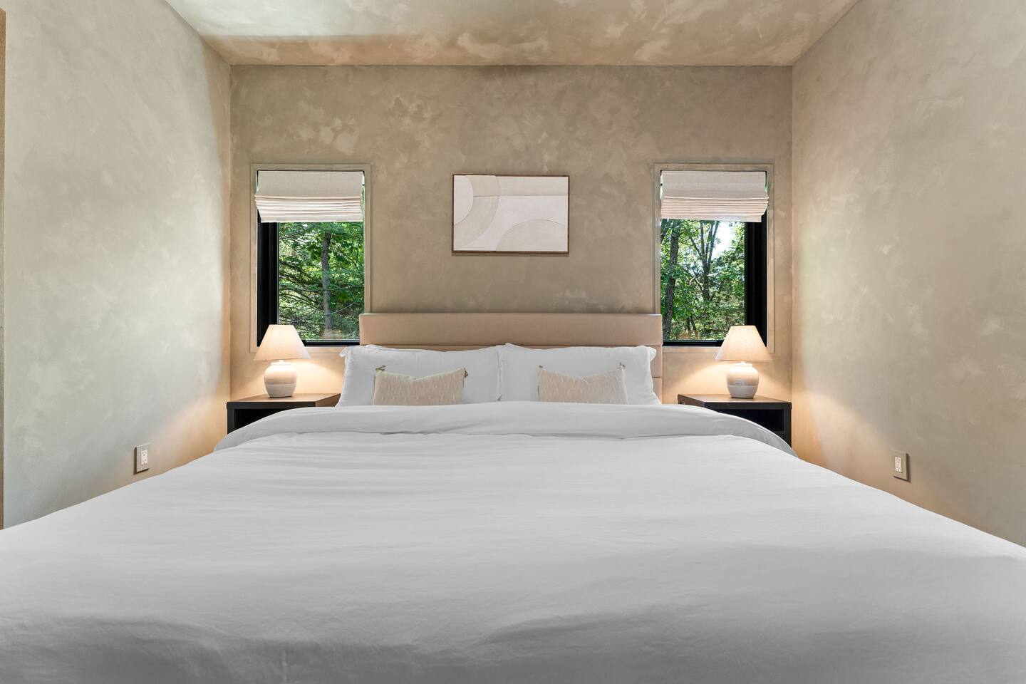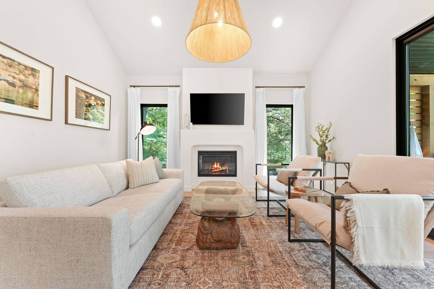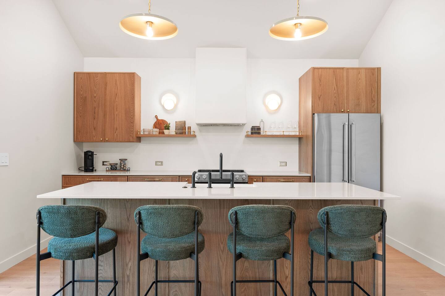 Get ready to unwind at our lakefront wellness retreat featuring a private onsite gym with en suite bathroom and hot cold therapy with a PLUNGE cold plunge and custom-built Scandinavian-style sauna. Wellness doesn't stop there — guests can relax in the private hot tub and enjoy the calming nature of our surrounding lake area. The primary bedroom is a sleep sanctuary with Cozy Earth sheets and spa-inspired en suite with double shower heads and lux amenities. The fully-stocked chef's kitchen features Kitchen Aid appliances and a Nespresso Vertuo coffee maker. We supply coffee and espresso, half & half, sugar and stevia for your stay.