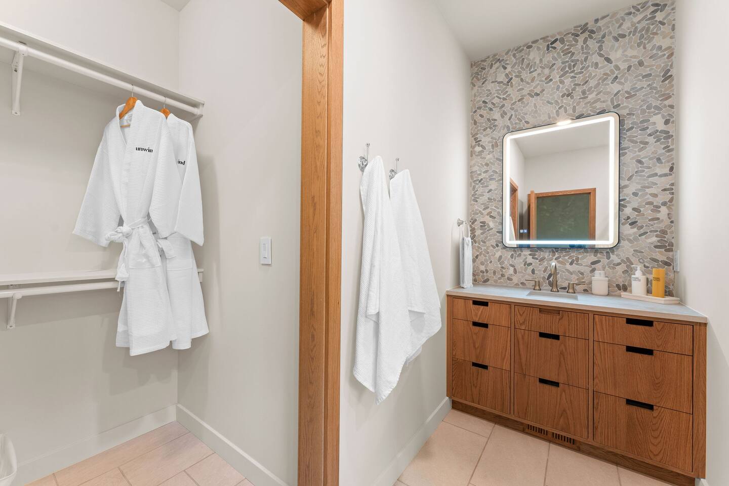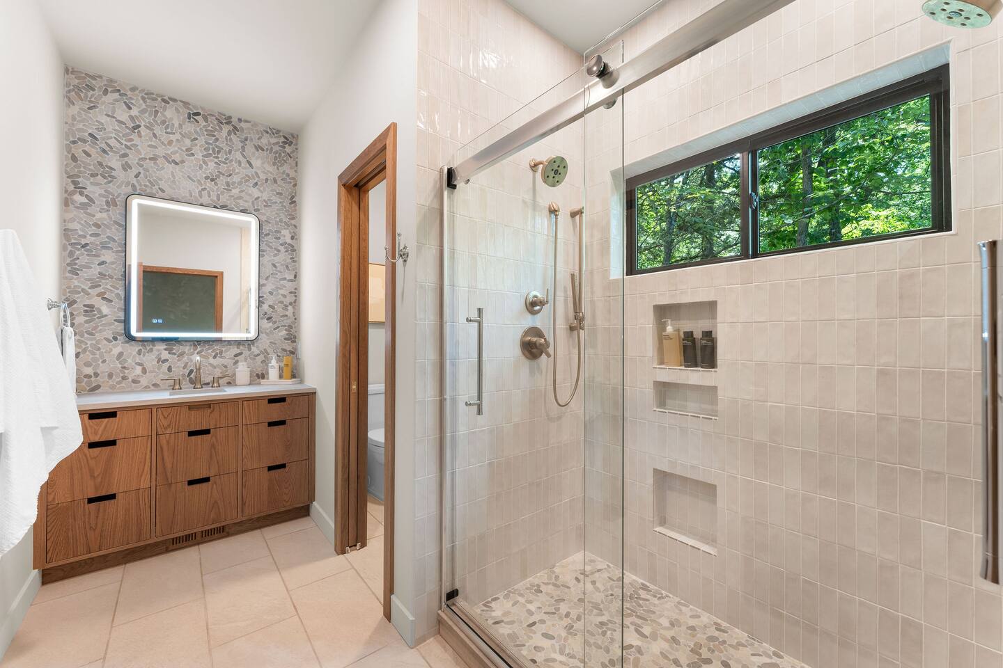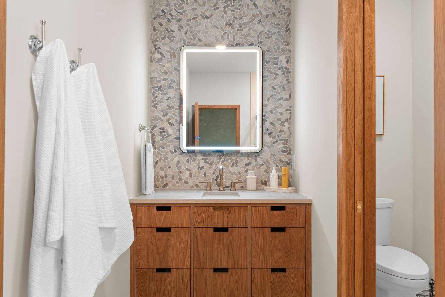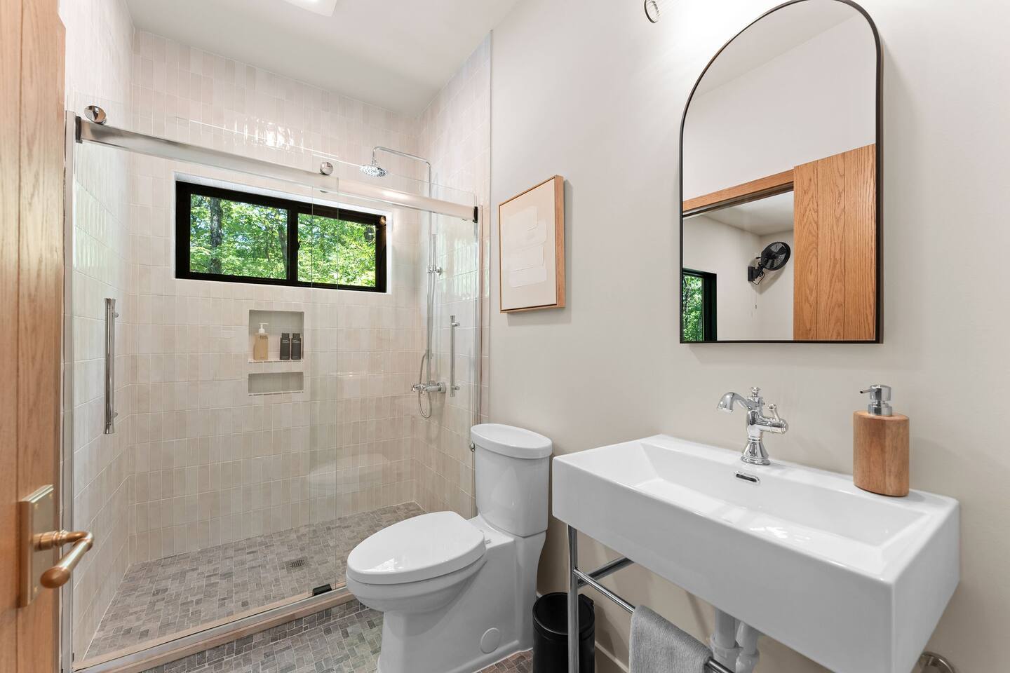 Get ready to unwind at our lakefront wellness retreat featuring a private onsite gym with en suite bathroom and hot cold therapy with a PLUNGE cold plunge and custom-built Scandinavian-style sauna. Wellness doesn't stop there — guests can relax in the private hot tub and enjoy the calming nature of our surrounding lake area. The primary bedroom is a sleep sanctuary with Cozy Earth sheets and spa-inspired en suite with double shower heads and lux amenities. The fully-stocked chef's kitchen features Kitchen Aid appliances and a Nespresso Vertuo coffee maker. We supply coffee and espresso, half & half, sugar and stevia for your stay.